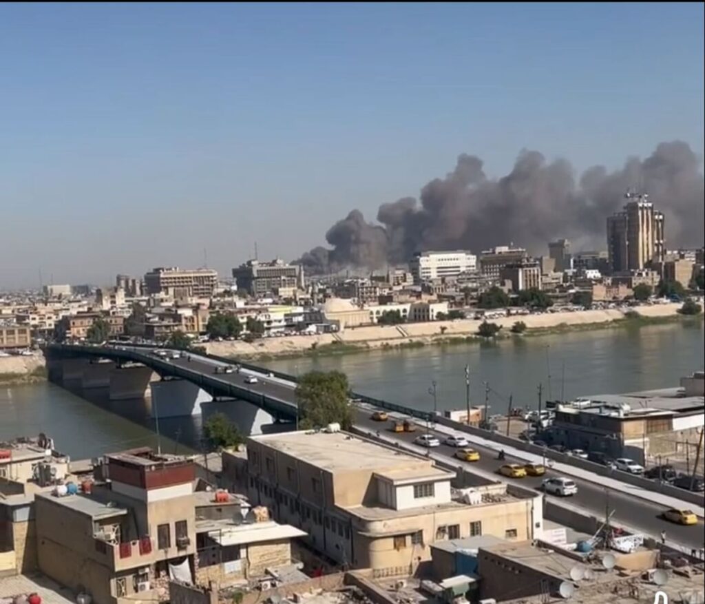 عاجل : حريق كبير في بغداد شارع الظلال في المخازن التجارية .