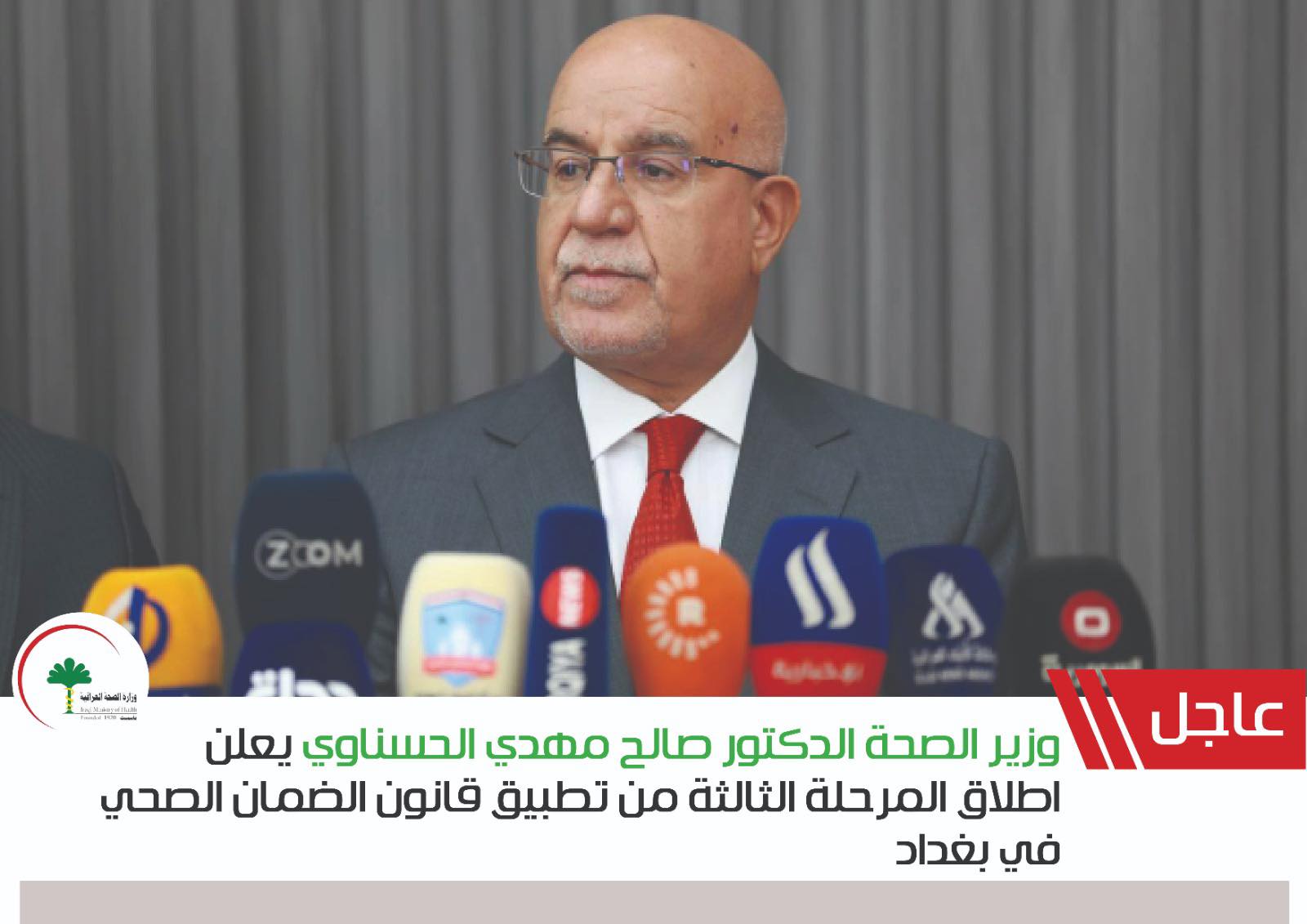 وزير الصحة الدكتور صالح مهدي الحسناوي يعلن إطلاق المرحلة الثالثة من تطبيق قانون الضمان الصحي في بغداد