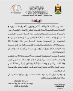 رئيس هيأة الإعلام والاتصالات يلتقي الأمين العام للاتحاد الدولي للاتصالات ويبحثان الشراكة الدولية واللوائح التنظيمية والعلاقة الثنائية September 4, 2025 التفاصيل