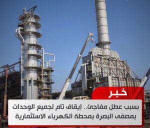بسبب عطل مفاجئ.. إيقاف تام لجميع الوحدات بمصفى البصرة بمحطة الكهرباء الاستثمارية January 8, 2025 التفاصيل