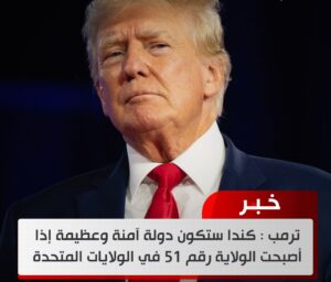 ترمب كندا ستكون دولة آمنة وعظيمة إذا أصبحت الولاية رقم 51 في الولايات المتحدة January 7, 2025 التفاصيل
