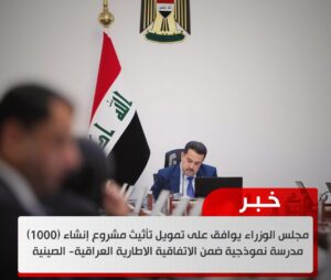 مجلس الوزراء يوافق على تمويل تأثيث مشروع إنشاء 1000مدرسة نموذجية ضمن الاتفاقية الاطارية العراقية- الصينية January 7, 2025 التفاصيل