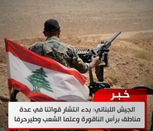 الجيش اللبناني بدء انتشار قواتنا في عدة مناطق برأس الناقورة وعلما الشعب وطيرحرفا January 7, 2025 التفاصيل