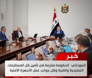 السوداني الحكومة ملتزمة في تأمين كل المستلزمات التسليحية والفنية وكل جوانب عمل الأجهزة الأمنية خصوصاً الجيش والشرطة January 7, 2025 التفاصيل