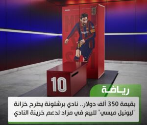 بقيمة 350 ألف دولار.. نادي برشلونة يطرح خزانة ليونيل ميسي للبيع في مزاد لدعم خزينة النادي January 7, 2025 التفاصيل