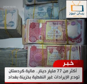 أكثر من 77 مليار دينار.. مالية كردستان تودع الإيرادات غير النفطية بخزينة بغداد October 16, 2024 التفاصيل