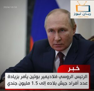الرئيس الروسي فلاديمير بوتين يأمر بزيادة عدد أفراد جيش بلاده إلى 1.5 مليون جندي October 16, 2024 التفاصيل