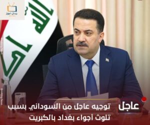 السوداني يوجه بتشكيل لجنة متخصصة لدراسة حالة التلوث وتكرار انبعاث رائحة الكبريت المنتشرة في بغداد والمحافظات المجاورة وبيان أسبابها ومعالجتها October 13, 2024 التفاصيل